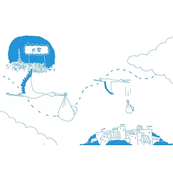 他以簡約線條勾勒生活裡的龐雜細節,在紙上描繪出一張育兒地圖,標記著旅途上的各種岔路口……像潛入敵營般放下熟睡嬰兒的壓力,還有看著寶寶指甲飛速變長的驚愕。這些情節不是設計出來的情境劇,而是日復一日、正在家裡上演的真實風景。