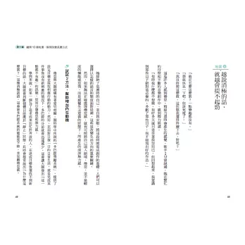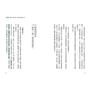 「所有結果,都取決於表達方式」—說話不只是傳遞訊息,更是表達情感的重要媒介,但多數人都忽略了該如何「好好說話」。本書歸納出50個任何人都做得到的小技巧,幫助大家有意識地做出一些微小改變,就能讓自己像成熟大人一樣,一開口就拉高好感度,維繫好關係,進而促進好結果發生。