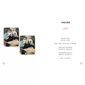 收錄超過260張珍貴照片,呈現福寶、愛寶和樂寶毛茸茸的幸福日常,書中也收錄宋爺爺寫給福寶的信,記錄福寶從出生到返中前的每個感人時刻。寫給一路陪福寶長大的你。