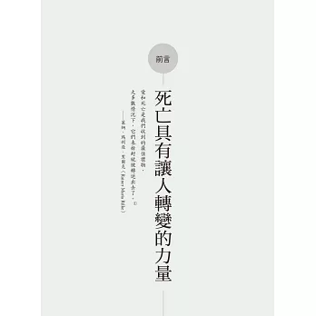 莫待未來、不推不拒、全心感受經驗、在過程中找到安歇之地、培養不知心。這本書是一封邀請函──其實是五封邀請函──邀請大家和死亡面對面,和她喝杯茶,讓她引領你活出更有意義、更有愛的人生。