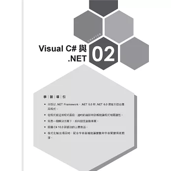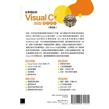 這是一本針對初學者認識程式語言的入門書,是以著墨於程式語言特色和語法的形式,導引學習Visual C#程式語言,以.NET提供的類別庫為範本,配合Visual Studio 2022整合式開發環境,加上愈來愈有智慧的AI輔助IntelliSense功能,可以依據使用者撰寫程式的習慣,讓所編寫的程式保有一致性,避免不必要的錯誤。無論是使用哪一種語言,皆能在共通語言執行環境下,發展出跨平台的應用程式。對於Visual C#語言有興趣,又想要對.NET類別庫有更多認識的讀者,可透過本書獲得通盤性的瞭解。本書以最嚴謹的態度,輔以最精要的表達方式,期許能降低閱讀壓力,筆者深信本書能讓初學者經過Visual C#的學習之旅,繼而開啟編寫程式語言的更多樂趣。