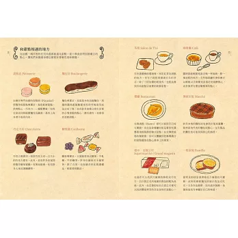 兩位作者走訪法國境內各地區,為讀者精心挑選了118道經典鄉土甜點,除了介紹其背後的歷史與地方淵源,與節慶、習俗、宗教之間的關聯,還有使用的材料、手法等資訊,對於喜愛甜點的人來說是充滿視覺、知識與趣味的多重享受,也能在享用各款法式甜點或點心時更增加樂趣。