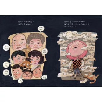 ◆彷彿從來沒有打開的日曆紙、拜了大半輩子的觀世音菩薩像、路上那一棵九十歲的樹王公等場景,以及各式各樣長壽的符號象徵,等待讀者發現。畫家周見信藉由豐富的圖像語言,帶領讀者回到阿祖的家!