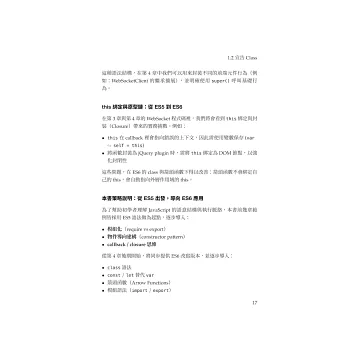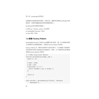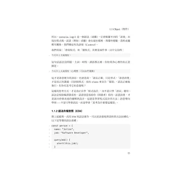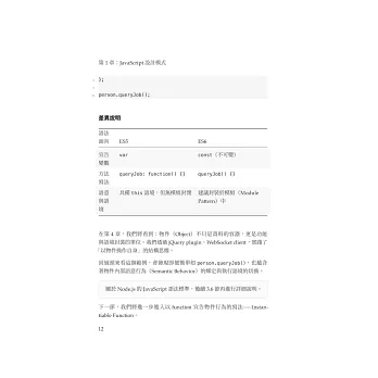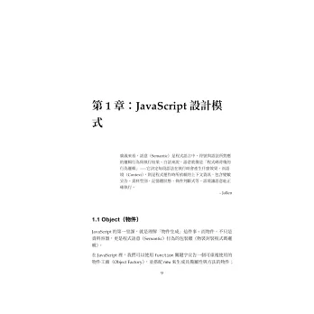 • 第 1 章,我們從 函數與設計模式啟程,理解 JavaScript 的語言本質;