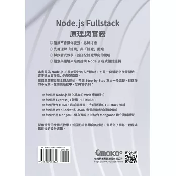 本書帶領 Node.js 初學者,從 JavaScript 程式語言,到入門 Node.js的軟體思惟與設計: