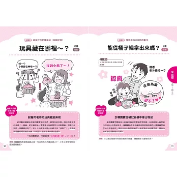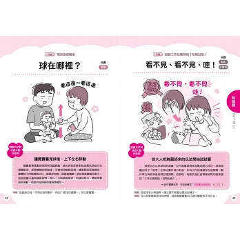 每個遊戲都搭配可愛插圖,詳盡解說「為什麼這樣玩有幫助」,輕鬆了解寶寶發展關鍵。