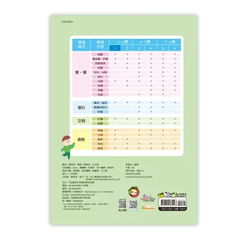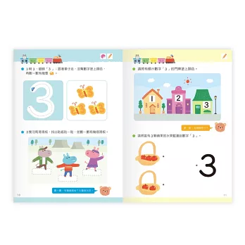 螺旋式教學法。建立數與量,空間,圖形和邏輯概念。豐富,多層次的題型,加深幼兒對數概念的理解。搭配貼紙,紙卡操作,促進學習效能。