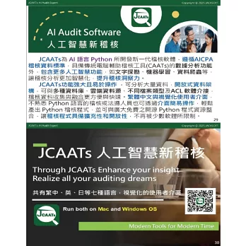 我們深信,數位化不應是技術門檻,而是專業升級的助力。期望這本書不只是教材,而是讀者實現智慧查核、提升職能的起點。讓我們一起迎向更透明、更高效率的審計新時代。