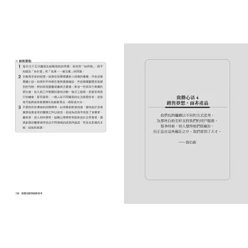 你現在知道了賈伯斯會怎麼做了。不是每個人都能複製賈伯斯的成功,但任何人都能受這七大致勝心法所啟發,打造企業和個人的創新DNA,應用於工作、職涯和生活中。