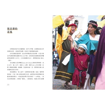 【打開書,你會聽到早晨瓜京街角通勤族熙攘往來的聲響、聞到市場中炸豬皮的香味、看到皮涅塔被打爆後噴濺四散的亮彩紙花。作者在這本書的背後掌鏡,拍攝一部部紀錄片,跟著她的鏡頭,你會逐漸放下對中美洲的刻板印象,你走進的,是瓜地馬拉的日常生活與深厚的文化底蘊。】