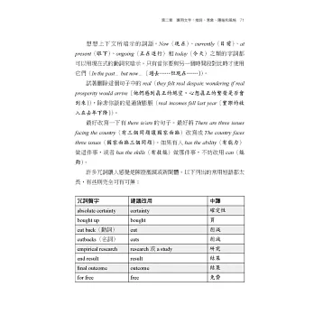 第三章探討的範圍很廣,最饒人興味的是末尾指出「may和might」的差異。這是讓《經濟學人》作家跌倒的絆腳石。一字之差,句義反轉,可謂差之毫釐,繆以千里。作者列出兩個例子,若能細細體會,洞徹其中奧妙,便可豁然開朗,更上一層樓。