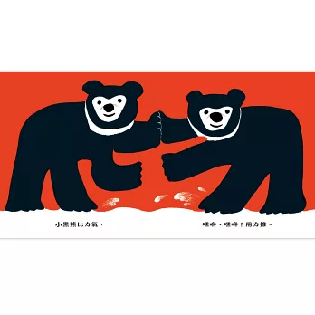 小黑熊比力氣,嘿咻、嘿咻!用力推。