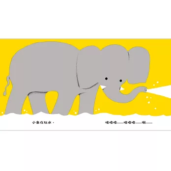 ……1隻小象、2隻小黑熊、3隻小豬……,每翻一頁,就會多一隻動物,精神抖擻的在遊戲。孩子可以猜猜下一頁出現的動物會是什麼、牠們又會一起玩什麼遊戲呢?一邊在歡愉的氛圍中動動身體,一邊開心的數數。