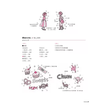 提供書中所有作品的實際圖案尺寸,用最好繡的原寸大小來熟悉繡法後,就可以將文字及插畫自由重組搭配,繡出與眾不同的嶄新圖樣。