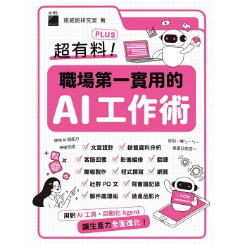 AI 進化速度驚人, 除了 ChatGPT 外, 還有超級多 AI 工具問世, 但要如何活用種種工具, 絕對是一項大挑戰。市面上雖然有不少 AI 職場、AI 工具書, 但不少只教工具介面操作, 範例也不夠職場面, 很容易用到最後不知道這些 AI 要用在哪裡而晾在一旁...