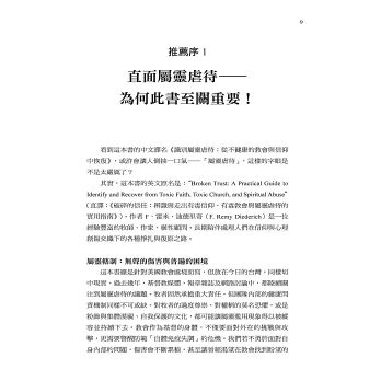其實,這本書的英文原名是:”Broken Trust: A Practical Guide to Identify and Recover from Toxic Faith, Toxic Church, and Spiritual Abuse”(直譯:《破碎的信任:辨識與走出有毒信仰、有毒教會與屬靈虐待的實用指南》)。作者 F.雷米.迪德里奇(F. Remy Diederich )是一位經驗豐富的牧師、作家、靈性顧問。長期陪伴處理人們在信仰與心理創傷交織下的各種掙扎與復原之路。