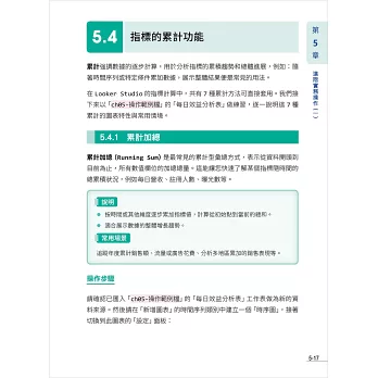 ✦資料視覺化專案實作:書中以實際電商網站資料為例,指導讀者掌握 Looker Studio 的強大功能,如欄位參數、進階篩選器、下鑽查詢、維度群組、社群視覺元件等,讓讀者能夠充分發揮各項 Google BI 工具的潛力。