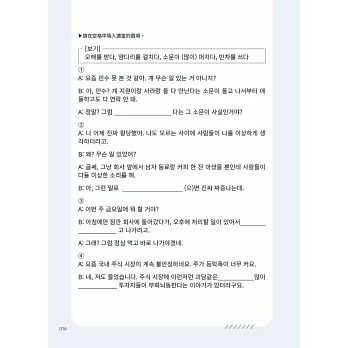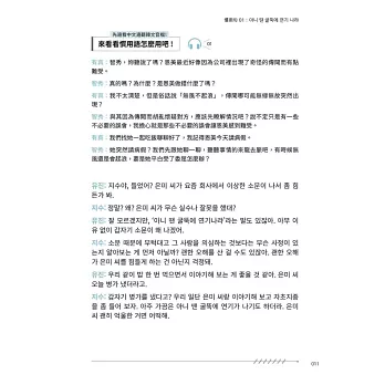 每個單元以插圖情境開場,不但能加深印象,更能掌握韓式邏輯。接著進入實用對話,並搭配單字、慣用語解析說明,最後則提供聽寫練習、綜合測驗等多元題型,幫助你從輸入到輸出循序漸進,學得自然、說得道地。