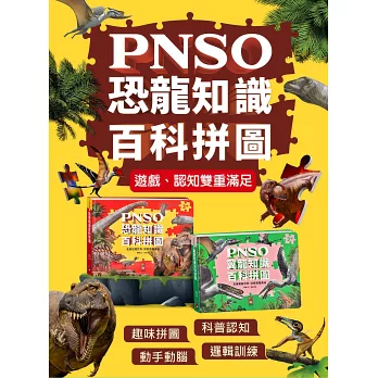 《PNSO恐龍知識百科拼圖》內含6種不同片數的進階式益智拼圖,讓孩子動手拼拼看,同時閱讀不同時代的恐龍特色、知識、習性,培養閱讀習慣,搭配不同階段片數的恐龍拼圖,讓孩子動手拼一拼,不只強化手眼協調,同時也可以訓練腦力與專注力,百科性的閱讀內文,讓孩子吸收知識。