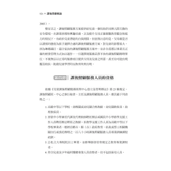 本書出版的初衷,即在於積極回應兒童課後照顧從業人員的專業養成與在職訓練的重要性。在架構安排上,本書首先說明兒童課後照顧的意義、發展背景與功能,係提供讀者對兒童課後照顧服務方案的基本認識。並進一步從運作機轉、辦理單位、方案內容、人員資格與專業倫理、申辦與管理、問題省思,具體說明兒童課後照顧的機制。其次,就兒童發展有關的重要理論:生理發展、認知發展、社會發展,進行理論內涵的探討,並引導讀者能藉此理解上述三個理論與兒童課後照顧之間的重要關聯性。接著,從教學、評量、班級經營、兒童輔導、學校行政組織與資源、當前與國民小學有關的重要法令等層面,詳細說明藉以強化實務操作面的專業知能,藉此建立正確的觀念和做法。