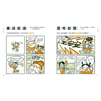 第一至四集的成語小漫畫情感豐沛,兼顧家庭、學校、社會等面向的互動實境,幫助孩子養成獨立思辨又樂觀的性格。第五集則跳脫前四集體例,將成語的歷史典故改編為詼諧的舞臺劇劇本,在閱讀漫畫之餘,還能結合藝術與人文領域,以角色扮演的方式深入理解成語精髓,形式活潑多變又好玩!書末附錄的常見迷思釋疑可幫助孩子更精準掌握語意,以及提供了可以自由發揮創意揮灑的空白四格漫畫……輕鬆達成跨領域多元學習,誰說學習成語只能有一種方式呢?