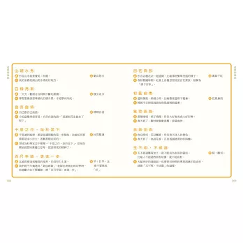 本套書中的〈成語小漫畫〉皆有詳盡解說,〈成語加油站〉則提供實用例句、近反義成語以及難字釋疑,再搭配〈分類百寶箱〉補充各主題的延伸成語,讓孩子的學識量瞬間爆增!第五集獨有的成語典故和〈成語小劇場〉則將古籍化為劇場腳本,在學習成語之餘,還能以戲劇互動方式演出,樂趣無窮。