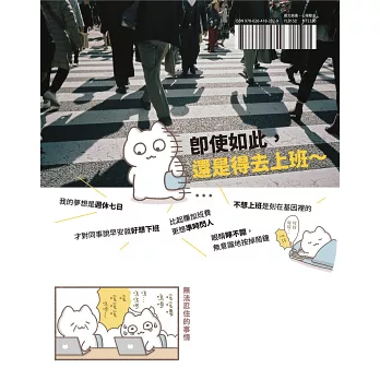 雖然我當上班族的時間不長,也對書中的好幾則漫畫心有戚戚焉。不只是在職場上會遇到的事情,作者也畫出許多生活中會發生的事情。讓人不禁噗哧一笑的同時,也感覺「啊,我也是這樣每天努力活著呢!」