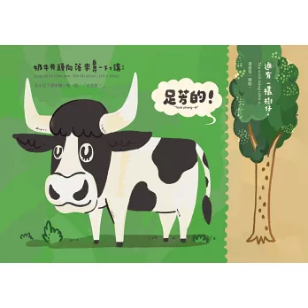 你看!這裡有一大片草地。乳牛低下頭來聞一聞,說:「好香喔!」