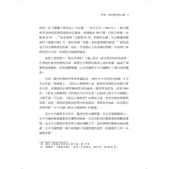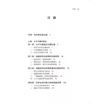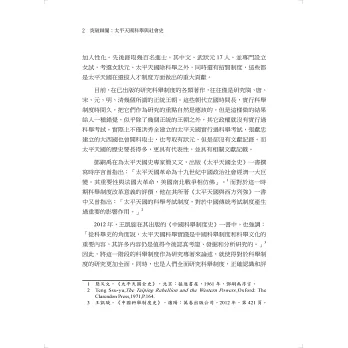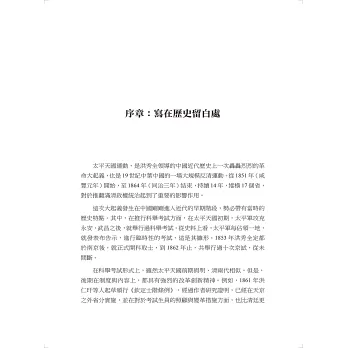 研究太平天國科舉,就不能僅局限於科舉考試本身,而應該從科舉文化與社會史的多角度,立體化進行研究。本書分為十二章,從第一章到第六章為本書的「上編」部分,詳細論述了從太平天國前的中國社會、到太平天國同時期,咸豐與同治時期的科舉歷程與應試特色;洪秀全的科舉之路與起義思想,太平天國對科舉的改革與實踐,太平天國科舉的意義與社會影響等方面內容,結合大量史料進行全方位、綜合性分析與研究。同時,針對現有研究成果的不足之處,補充作者的觀點與評論。
