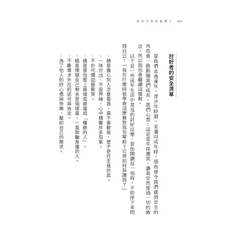 本書真誠、貼切,絕對值得一讀再讀,它擁有改變你整個人生的力量。如果你正為陰魂不散的焦慮所擾(總是擔心自己做錯了什麼,或者別人不喜歡你),那麼這本書將讓你感覺如沐春風。──凱薩琳.摩根.舍弗勒