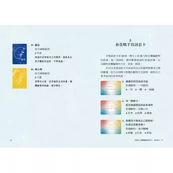 ✦這副牌卡的功能不是占卜,而是透過提問、抽牌、文字訊息、動物的力量,幫助我們釐清困惑,面對不安,走過徬徨,撫慰離別的震盪。