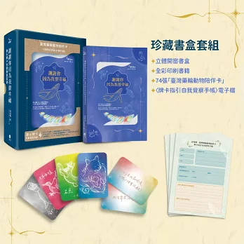 ✦專屬贈品:[牌卡指引自我覺察手帳]電子檔,掃描書中QR Code,即可下載列印、書寫,留下向內探索、自我成長過程。
