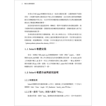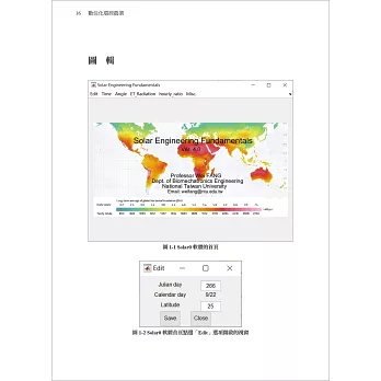 本書彙整了作者在環控農業領域多年的教學與研究結晶,內容涵括太陽光利用型植物工廠(具環控能力、能夠全年栽培的精密型溫室)與全人工光型植物工廠,主要透過以MATLAB語言撰寫的軟體或程式,探討植物工廠運作時涉及的相關參數之計算、模擬與成本評估,包括陽光能量、溼空氣熱力學性質、通風量、水分蒸發散量、空氣溫度、空氣溼度、溼簾/噴霧降溫、供暖系統、作物水逆境指標、淨光合作用速率、燈光控制、水分平衡、二氧化碳平衡等。本書亦提供相關原始碼,使讀者可以由引用的計算公式瞭解相關的工程原理。