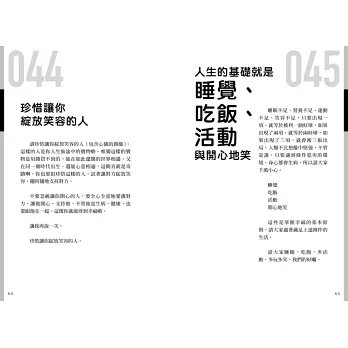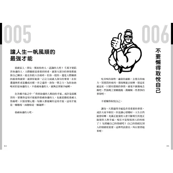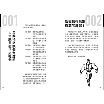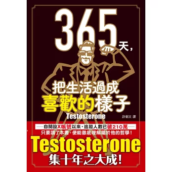 所以呢,我突然想到一件事!那就是如果我把過去說過的一些話挑出來介紹,豈不是一件很有價值的事情嗎?不對,是肯定會有價值!所以本書就因此誕生了。我希望這本書能讓大家變得很順利,很幸福,哪怕只有一點幫助也好。於是我決定將這十年內說過的話整理成類似Testosterone聖經的書籍,讓大家在一年365天都能看一句鼓舞自己的話。每天只讀一句話,就能透過潛移默化的過程,了解「掌握幸福與快樂」的思維,當然大家也可以一口氣把整本書讀完,但我還是建議以固定的速度(一天讀1~7頁左右)閱讀,讀完之後,再從頭開始閱讀,讓掌握幸福與快樂的思維植入潛意識之中。