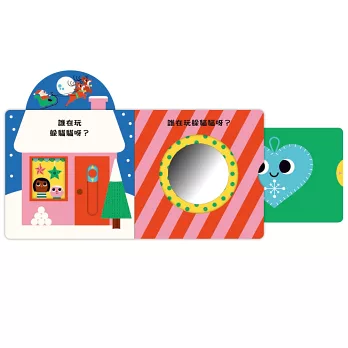爸爸媽媽可以隨著寶寶推拉操作,幫助他學習指物命名,在遊戲中認識和聖誕節相關人事物,也可以藉機跟孩子對著鏡子玩躲貓貓的遊戲,幫助他建立自我概念。這是一本可以反覆操作的遊戲書,一定會讓愛玩躲貓貓的小寶寶愛不釋手!