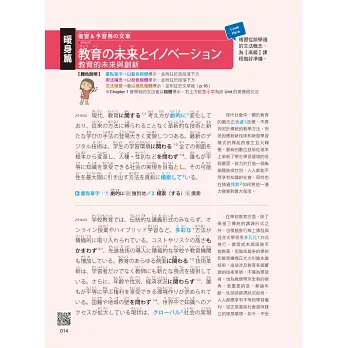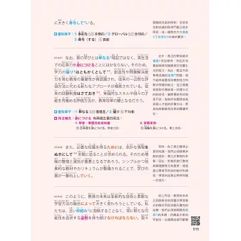 從文章中我們可以學到單字跟文法,而為了讓學習者回憶起先前學過的文法,並做好進階學習的準備,金子祐己Yumi老師在每篇章前各撰寫一篇文章,讓學習者在閱讀之際,一併回憶起曾經學過的內容,並為接下來要學的進階課程稍作暖身。