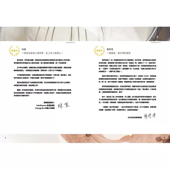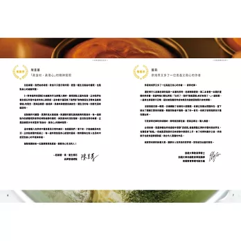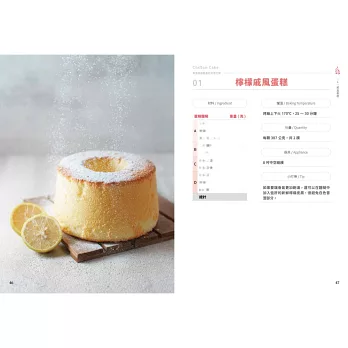 「幸福」,許家齊老師深信,烘焙不只是技術的展現,更是情感的傳遞與生活美學的體現。書中分為六大章節:戚風蛋糕、裝飾蛋糕、乳酪蛋糕、派塔、司康以及可麗露,每一類都從經典基礎出發,延伸至創新變化。從經典配方到融合東方韻味的口味,展現了作者對於風味層次的深刻理解。