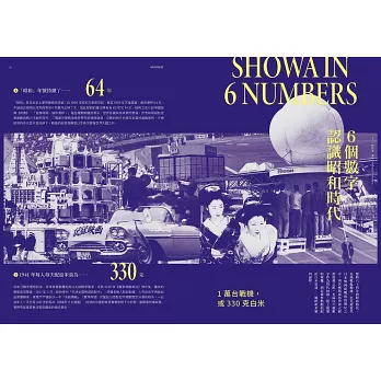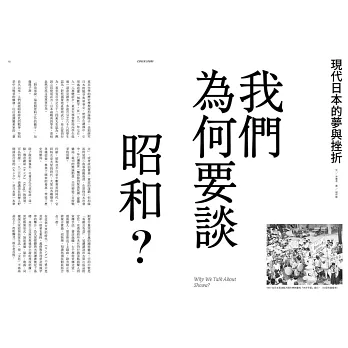 「昭和」是日本歷史上時間最長的年號,跨越二戰時期,自1926年開始至1989年止一共64年,歷經日本從帝國主義到民主化,戰敗重建、經濟復興成長至高峰泡沫化的轉折時代。昭和時代所發展出的政治、社會、藝術、文學及大眾文化,形塑出當代日本的肌骨,甚至影響鄰近的台灣、韓國與其他東亞國家,動漫、遊戲、音樂等大眾文化,更廣泛地向外輸出至全世界,產生巨大的影響力。