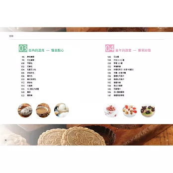 收錄了超過40種傳統中式糕餅、包子饅頭、點心糖果的製作方法,按照用途和文化意義分為四大主題,每一個主題都深深植根於中華文化的深厚土壤中。