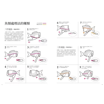 全書以「步驟拆解+圖解對照」為主軸,呈現每一個動作的重點與判斷依據。透過對「為何這樣處理」的完整說明,讀者不僅能學習單一技巧,更能理解背後的邏輯、將相同手法靈活應用至不同魚種,真正達到「知其然,亦知其所以然」的專業技巧模仿。