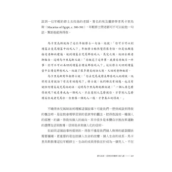 沙漠退隱者伊瓦格魯斯的靈修只有神祕感和苦修嗎?作者的看法是否定的。神學與禱告的關係同樣是伊瓦格魯斯的關注,但他的形態是在無言無語、靜默、安息和仰望中接觸神。隱修者亦早已注意到心靈健康,如何培養不動心無偏情的生命特質,並透過神的形塑,轉化負面情緒成為德行。