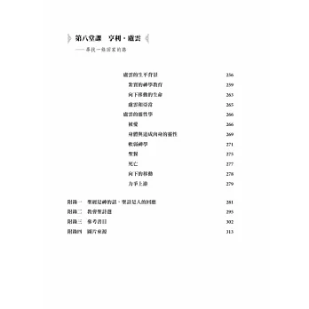 我們來到這些人物面前,正如埃提阿伯的太監在使徒行傳八章中來到以賽亞書卷前:「若沒有人指教我,怎能明白呢?」同樣地,本書各篇章,也擔當著教導者的角色,幫助讀者學習八位靈修大師的生命智慧,明白他們的言行榜樣如何帶來生命的轉化。透過向這八位屬靈大師學習,盼望讀者不僅能夠得著上帝的光照,還能帶來更深刻的悔改、更偉大的愛,進而更忠心地與上帝同行。