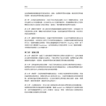 部分案例研究將會展示如何以最佳方式應用這些演算法,接著,你將聚焦在深度學習演算法,並學習各種不同類型的深度學習模型及其實際的應用方式。