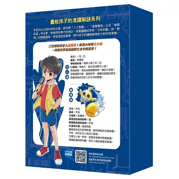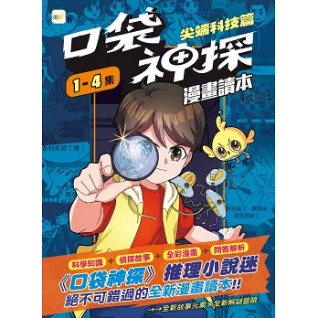 ﹝漫畫讀本﹞則為搭配兒童小說版本之全新創作系列,以「尖端科技」為主題,將有關「人工智慧」、「虛擬實境」以及「病毒疫苗」等元素,和偵探故事巧妙融合,透過更生動詳實的全彩漫畫形式,搭配富含知識性的文字敘述,使閱讀變成參與「分析判斷」和「推理」的解謎過程。希望透過這套書,能讓孩子用另一種趣味的形式提升邏輯推理能力及增進科學素養!