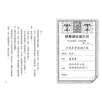 最擅長撰寫奇幻小說的廣嶋玲子,這次特別聘請了一位長得很像貓頭鷹的老爺爺,合力開了一家名為「疑難雜症旅行社」的奇妙商店,專門為遇到麻煩的客人提供服務,安排一段量身訂做的旅程。
