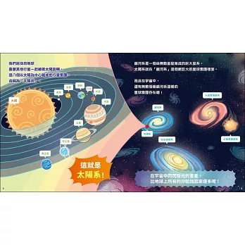 用傳神又逗趣的插圖、充滿幽默感的情境漫畫,以及真實的宇宙影像圖,