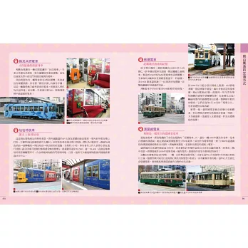 除了介紹全世界唯一的「Hello Kitty新幹線列車」外,還有造型獨特的「旅行箱列車」、可看鄰坡面海奇景的「etSETOra列車」、古董級的「被爆電車」和「漢諾威電車」、週末上街搭乘「恰恰特快車」,以及多種當地限定電車,此外,各城市中也有富含地方色彩的路面電車,千萬別錯過。