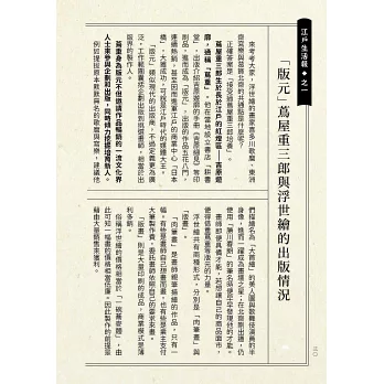 我提筆寫下本書是想用熱愛的浮世繪,和大家一起感受「江戶的一天」。