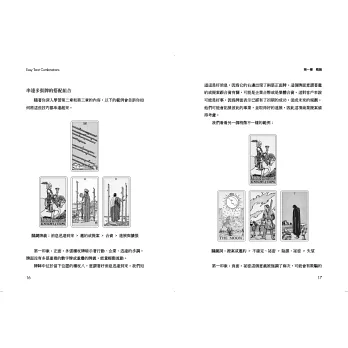 塔羅組合的前後順序極為重要。每一張牌所象徵的事件,都會與下一張牌的情境形成因果關聯。從最簡單的兩張牌、三張牌、四張牌,到五張牌以上的複雜組合,都能在本書的引導下,讓思路更清晰開闊,見樹又見林。