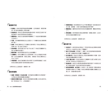 妳的症狀是非常好的失衡指標,書中羅列了症狀清單,以便妳勾選自己出現的相關症狀,了解自己面臨哪種荷爾蒙失衡狀況,同時也詳細說明如何對症調節荷爾蒙。